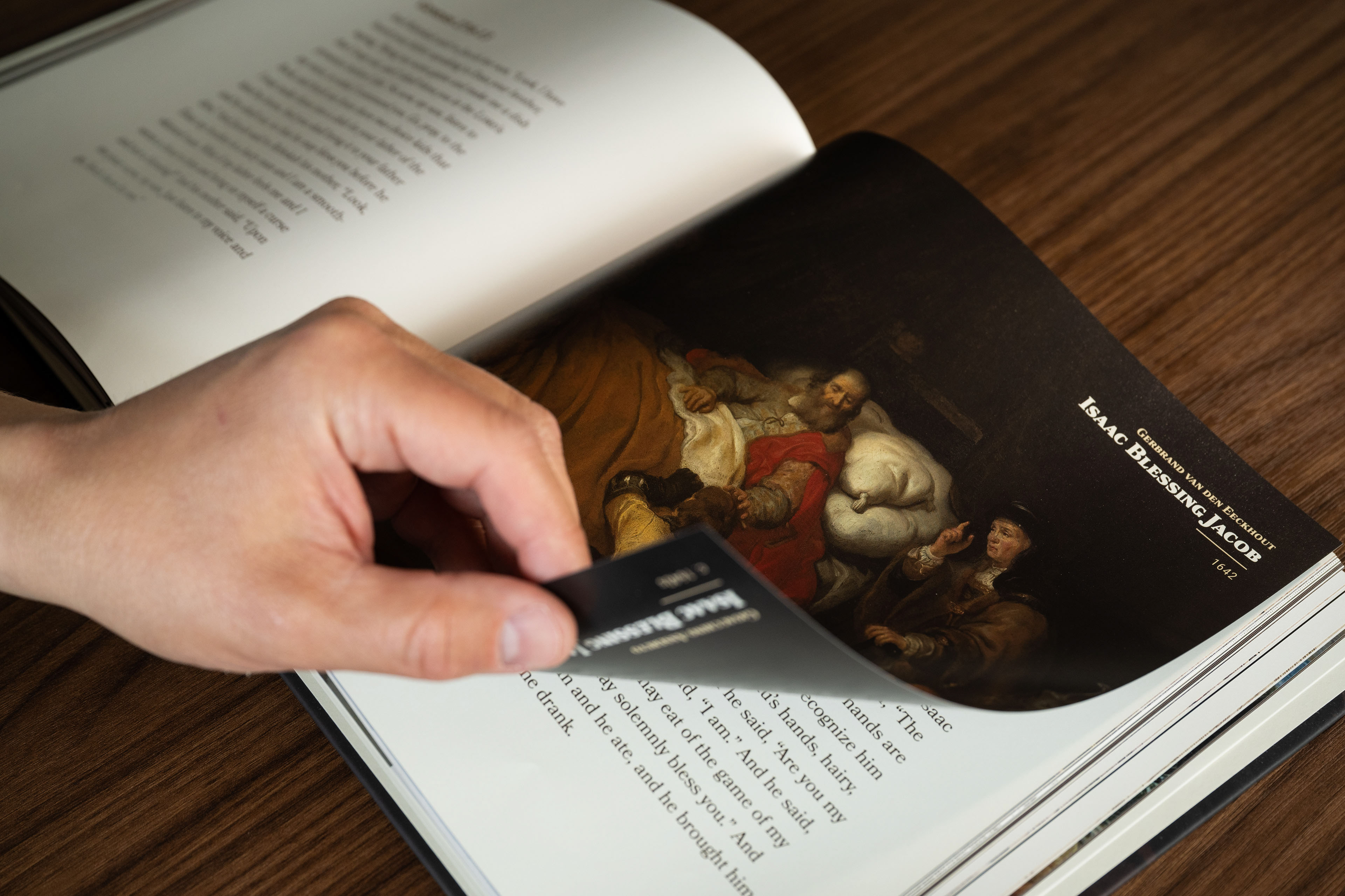 Jacob Wrestling with The Angel by Rembrandt displayed beside passage from Genesis 32.